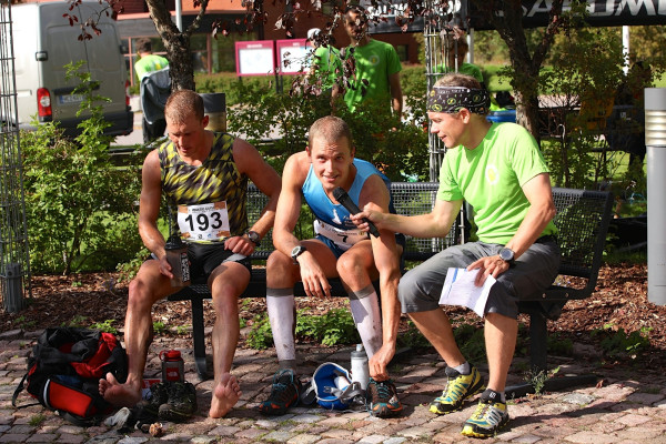 - Henri Ansio antamassa lausuntoja Nuuksio Classicin kakkossijan jälkeen. Vasemmalla kisan voittaja Janne Mononen. Kuva: Salla Lyytinen